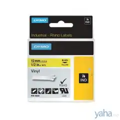 Dymo Tape Rhino Vinyl Sort på Gul 12mm (5m)