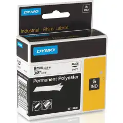 Dymo Rhino Permanent Polyester Label Sort på Hvit 9mm (5.5m)