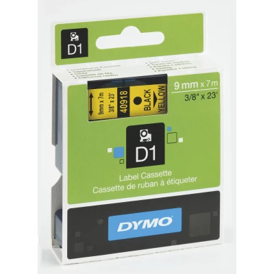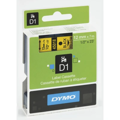 Dymo 45018 D1 Tape Sort på Gul 12mm (7m) S0720580