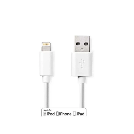 Pålitelig USB-A til Lightning-kabel fra NEDIS – perfekt for å lade og synkronisere iPhone, iPad eller iPod. Med tre meter lengde får du god rekkevidde enten du er hjemme, på kontoret eller på reise. Kabelen gir rask lading og stabil dataoverføring, og er kompatibel med alle Apple-enheter med Lightning-kontakt. Ideell for bruk med lader, powerbank eller PC. - Lightning kabel for rask og sikker lading - Kompakt og slitesterk, perfekt for daglig bruk - Pålitelig dataoverføring ved synkronisering - Kompatibel med: iPhone, iPad og iPod med Lightning-kontakt - Tilkoblinger: USB-A (hann) til Lightning (hann) - Lengde: 3m - Farge: Hvit