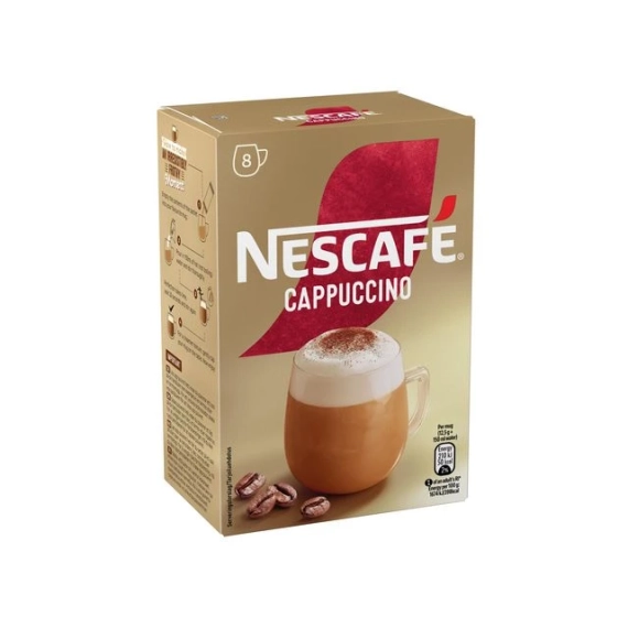 Cappuccino er en utsøkt blanding av lekker kremet melk og NESCAFÉ-kaffe. Lag din egen kaffespesialitet hjemme. Kremet melkeskum på toppen av hver kopp Laget av instant kaffe, melkepulver og sukker - Allergener: Melk