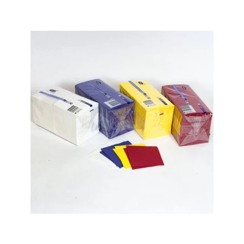 Disse resirkulerbare serviettene er brettet i fire og er laget av mykpapir med tre lag. Du kan velge mellom en rekke forskjellige farger og mønstre.