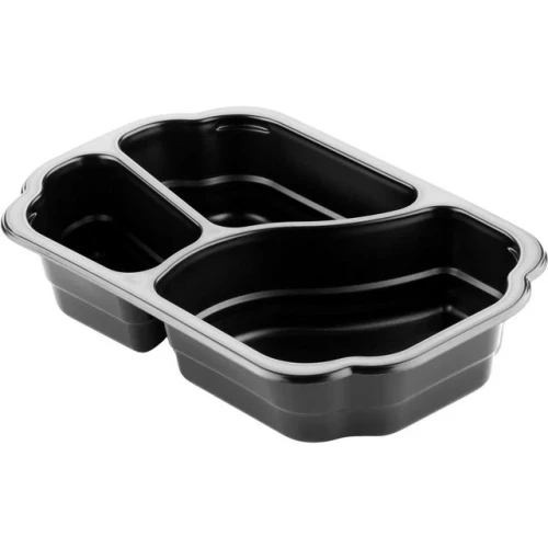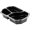 Pakk inn rester som kundene kan ta med hjem i denne Duni Take-Away-beholderen for oppbevaring av mat med inndelte seksjoner. Oppbevar rester eller send ut matleveranser i denne Duni Take-Away-beholderen for oppbevaring av mat. De fraskilte seksjonene holder maten atskilt for et tiltalende måltid, mens den slitesterke plastkonstruksjonen håndterer mikrobølgeovn og kjøleskapstemperaturer fra -20 til 120 grader celsius. Denne Duni Take-Away-beholderen for oppbevaring av mat leveres i et sett med 245, noe som gjør den til et utmerket alternativ for servering på sykehus og pleiehjem samt til hjemlevering. - Server eller oppbevar hele måltider i én beholder - Inndelt i seksjoner for å holde retter atskilt - Solid konstruksjon som ikke sprekker - Farge: Sort - Beholderen måler 250 x 159 x 48mm