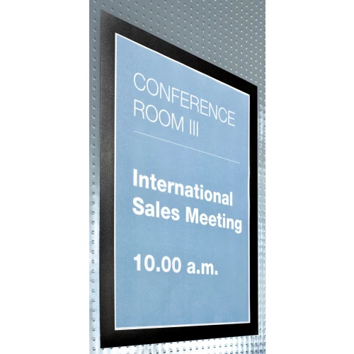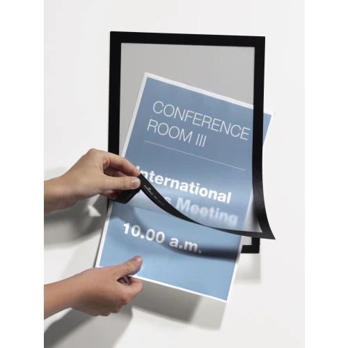 Selvklebende posterramme med magnetisk forside for bruk på glass og andra slette overflater.