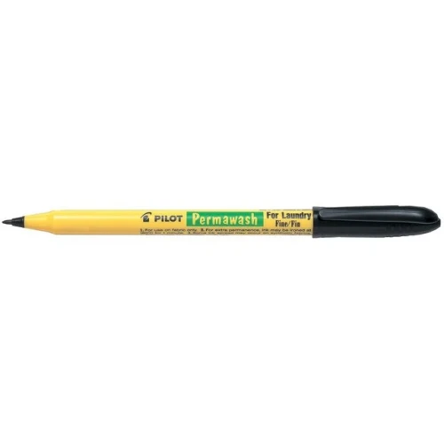 Pilot Permawash er en merkepenn som er ideell for å skrive på tøy og liknende materiale. Den er meget vaskebestandig, slik at du kan skrive på tekstiler og deretter vaske dem regelmessig, noe som gjør den utmerket til å merke barnas klær. Merkepennen tørker raskt for å unngå at det gnis utover mens man skriver. Den fine spissen lager en 1,0 mm strek som passer til jobber som krever nøyaktig og kontrollert skriving. Tusjen kommer med en hette, slik at du kan ta den med deg når du er på farten, og har dessuten en praktisk lommeklips. Tusjen har et slankt, lett design som gjør den ekstremt behagelig og enkel å bruke.