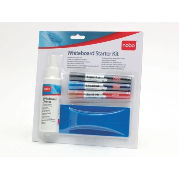 Nobo® Whiteboard-startsettet har alt det grunnleggende du trenger for bruk og vedlikehold av tusjtavler.