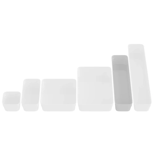 Fleksibel liten oppbevaring for organisering av skuffer og skap.