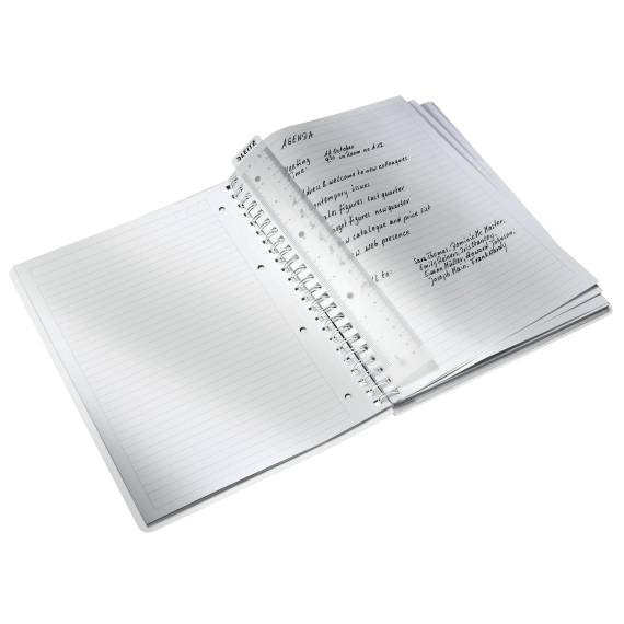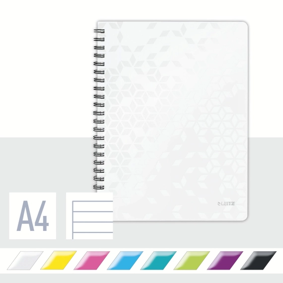 Perfekt kombinasjon av funksjonalitet og design. Det er en notatbok med integrert klar lomme for løse ark. Slående WOW farger og stilig geometrisk mønster på omslaget. - Omslag i robust PP i WOW-farge og geometrisk design utvendig og ren, hvit farge innvendig - 80 ark med 80 g FSC®-sertifisert papir i meget god kvalitet - Mikroperforerte og hullede ark - Flyttbar linjal som også kan brukes som bokmerke - Lomme til løse ark, notater eller brosjyrer - Linjer omkranset av ramme og felt for tittel og dato øverst - Denne notatboken finnes i A4 og A5 format, med linjer eller ruter - Utfyller perfekt andre produkter i Leitz WOW-serien kontoret og hjemmekontoret