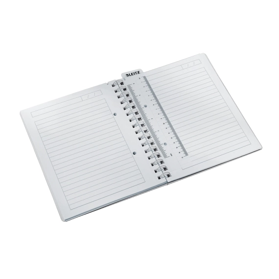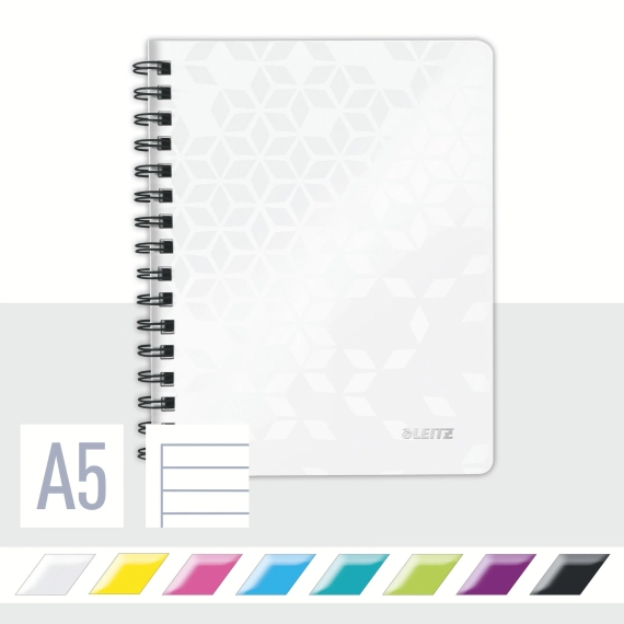 Perfekt kombinasjon av funksjonalitet og design. Det er en notatbok med integrert klar lomme for løse ark. Slående WOW farger og stilig geometrisk mønster på omslaget. - Omslag i robust PP i WOW-farge og geometrisk design utvendig og ren, hvit farge innvendig - 80 ark med 80 g FSC®-sertifisert papir i meget god kvalitet - Mikroperforerte og hullede ark - Flyttbar linjal som også kan brukes som bokmerke - Lomme til løse ark, notater eller brosjyrer - Linjer omkranset av ramme og felt for tittel og dato øverst - Denne notatboken finnes i A4 og A5 format, med linjer eller ruter - Utfyller perfekt andre produkter i Leitz WOW-serien kontoret og hjemmekontoret