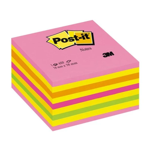 Bruk disse iøynefallende neonfargede Post-it®-klistrelappene for raskt og effektivt å gi påminnelser, legge igjen beskjeder eller lage oppgavelister. Sørg for at notatene og ideene dine blir lagt merke til, med disse neonfargede Post-it®-klistrelappene i fargene grønn, gul, rosa, oransje og ultrarosa. Denne kuben med klistrelapper er den perfekte løsningen hvis du vil unngå å gå tom for klistrelapper når det passer som verst. Disse Post-it®-klistrelappene er laget med PEFC-sertifiserte papirfibre, og er et miljøbevisst valg som dekker alle notatbehov. Post-it®-lapper er svært allsidige, slik at du kan bruke dem til ulike formål, for eksempel raskt å skrive ned telefonnumre, lage oppgavelister eller notere ideer og legge igjen beskjeder til kollegaer, venner eller familie. Lappene kan flyttes, slik at du enkelt kan feste, fjerne og plassere dem på nytt uten at de etterlater seg limrester. - Laget av PEFC™-sertifiserte papirfibre - De friske fargene gjør at beskjedene eller påminnelsene synes godt - Ideelle for oppgavelister, små notater og beskjeder - Ideelle for merking av sider eller for å legge inn notater i bøker eller tidsskrifter - Hver kube inneholder 450 ark - Post-it®-størrelse: 76 x 76mm - Post-it®-farger: Neongrønn, neongul, neonrosa, neonoransje og ultrarosa