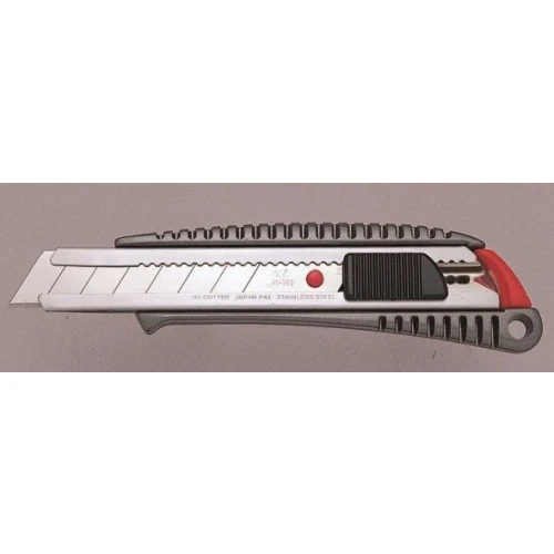 Kartongkniv med robust og lett aluminium bladholder.. Automatisk bladlås (Ratchet-lås-glidebryteren)