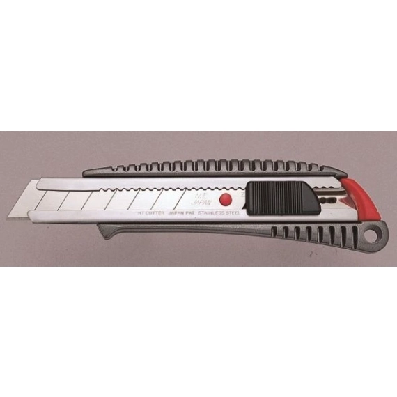 Kartongkniv med robust og lett aluminium bladholder.. Automatisk bladlås (Ratchet-lås-glidebryteren)