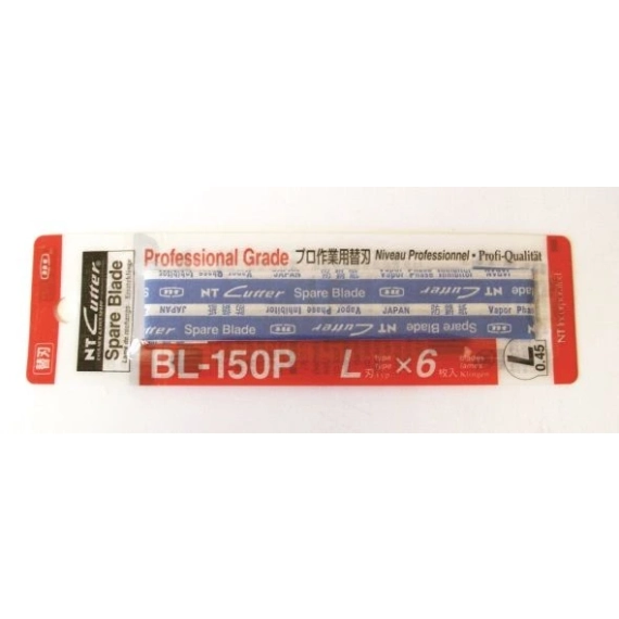 NT knekk-av-blader til standard kartongkniver. 6 reserve blader pakket i en praktisk plastdispenser med innebygd blad knekker og avfallsbeholder. Bare ta av det brukte bladet og det faller rett inn i avfallsbeholderen. Brukte kniver kan kasseres sikkert. Disse profesjonelle bladene er laget av høy kvalitets karbon stål og produsert gjennom flere stadier av presise prosesser for å oppnå den ultimate skarpheten og optimal kantbevaring. 18mm W x 100mm L x 0.45mm T 58 degree. Fungerer på: Papir, tapet, kartong, vinyl, film, krympe-wrap, etc. Perfekt for håndverk og hobbyprosjekter, profesjonelle kunstnere eller installatører samt generell bruk. 6 karbon stålblader per pakke. Laget i Japan.