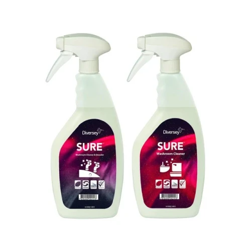 For bruksløsninger av SURE Washroom Cleaner og SURE Washroom CleanerDescaler i fra SmartDose&trade: eller beholder med konsentrert rengjøringsmiddel. Kommer med klistrelapper til begge produktene.