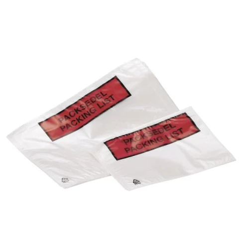 Til forsendelser der man ønsker å feste faktura eller følgeseddel på varen. Selvklebende, kleber på de fleste overflater - Åpning på langsiden - Mål: 235x175 mm - Tykkelse: 30 my - Pakke med 1000 stk.