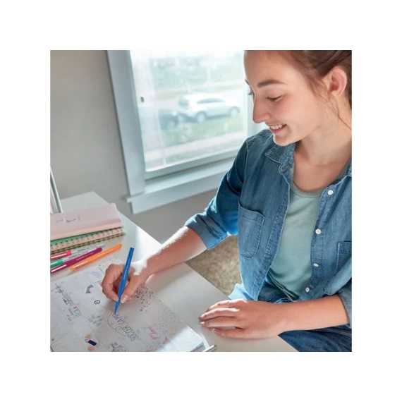 Perfekt flyt og levende farger med Papermate Fineliner. Papermate fineliner med 0,4 mm spiss gir deg en jevn skriveopplevelse med skarpe linjer og klare farger. Den turkise blekkfargen er ideell for kreativ skriving og tegning, både på kontoret og hjemme. - 0,4 mm fin spiss - Klare, levende farger - Turkis blekk