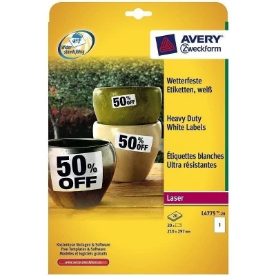 Avery Etikett L4775-20 210x297mm (20 stk)