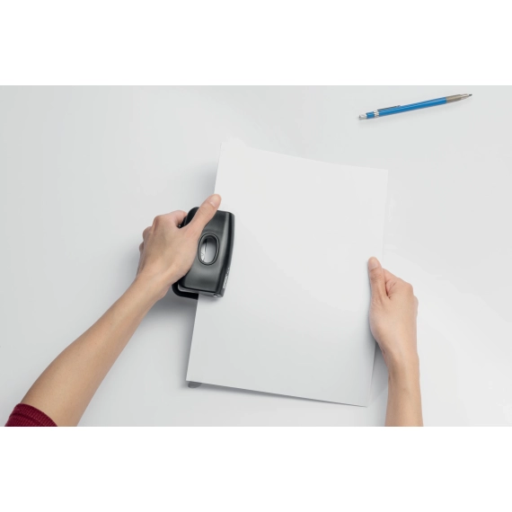 Kraftig hullemaskin i metall. Håndtak og bunn i forsterket ABS-plast. - Huller opptil 10 ark (80 g papir) - Praktisk og robust - Forsterket ABS plast på håndtak og base - Enkelt å tømme restavfallet