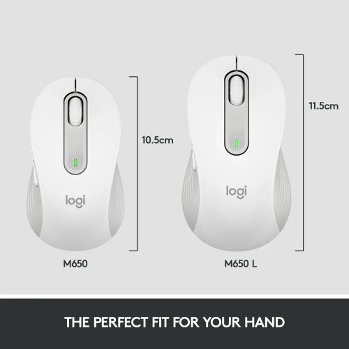 Upgrade to smarter scrolling, better comfort, and more productivity with the Signature M650 The versatile mouse features an adaptive scroll SmartWheel that delivers line-by-line precision, and auto-switches to super fast free spin mode with the flick of a finger. A choice of sizes for smaller, larger and left hands means there's a perfect fit for anyone. Seamless wireless connectivity, customizable side buttons, and a comfort shape keep you comfortably and productive hour after hour. Logitech’s SilentTouch technology delivers silent clicks to keep you focused – while 24-month battery life** and universal operating system compatibility ensure hassle-free performance. **Battery life may vary based on user and computing conditions