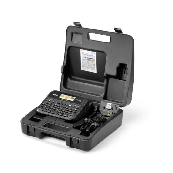 PT-D610BT VP- label printer for PC with colour display(Replaces PT-D600VP) • QWERTY keyboard• Large graphical display to review text and layout before printing• Advanced design software• USB connectivity• Print speeds up to 30mm/sec.• Prints labels up to 24mm in width• Label storage for 99 labels• Bluetooth connectivity• Full colour high-resolution back-lit display• Comes with carry case, AC adapter, USB cable, and 24mm black on white tape cassette (4m)