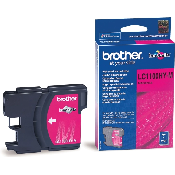Optimaliser utskriftene dine! Brother Blekkpatron LC-1100HYM Magenta Høykapasitet for 750 sider. Passer til DCP 6690 CW, MFC serier. Sjekk hele serien.