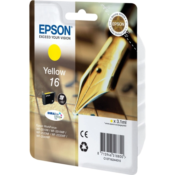 Forbedre Epson-skriverens ytelse med originale Epson Blekkpatron No.16 Gul (C13T16244010). Passer perfekt til WF-2010 W, WF-2530 WF, WF-2650 DWF og flere. Spar på kvalitet nå!
