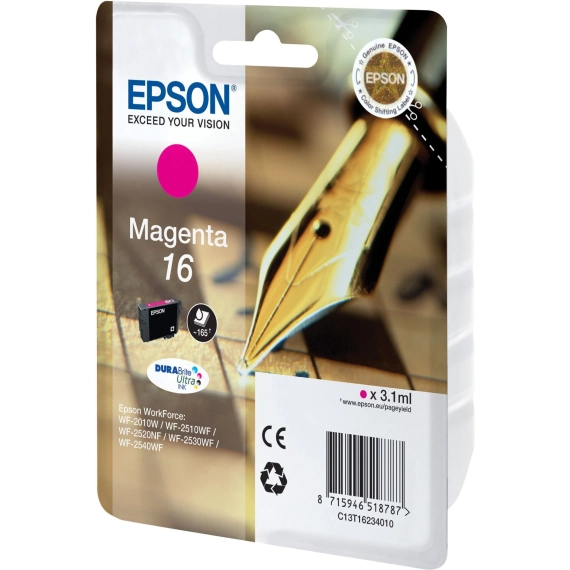 Sikre optimal utskriftskvalitet med Epson Blekkpatron No.16 Magenta for din Workforce WF-2650 DWF, WF-2760 DWF og mer. Utforsk serien!
