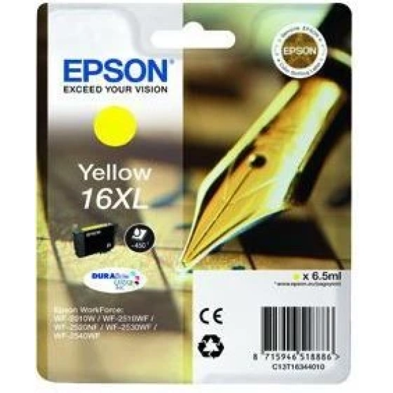 Optimaliser utskriftene med Epson Blekkpatron No.16XL Gul! Høykapasitet, 6.5ml, perfekt for WF-2010 W, WF-2510 WF, WF-2530 WF og flere. Klar til bruk.
