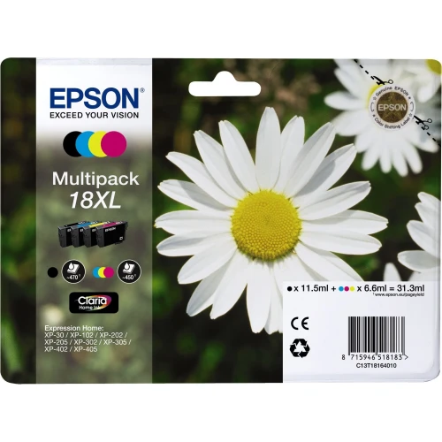 Epson Blekkpatron Pakke No.18XL Sort/CMY Høykapasitet (11.5ml/3x6.6ml)