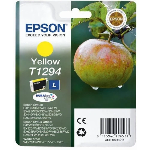 Oppgrader din Epson-skriver med Epson Blekkpatron T1294 Gul. Perfekt for modeller som Stylus SX235, Office BX305FW Plus, og Workforce WF-3520 DWF. Utforsk serien!