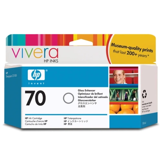 Lang levetid? Sikre optimal printkvalitet med HP Blekkpatron No.70 Gloss Enhancer (130ml), C9459A, for DesignJet Z3100 og Z3200 modeller. Klar til bruk.