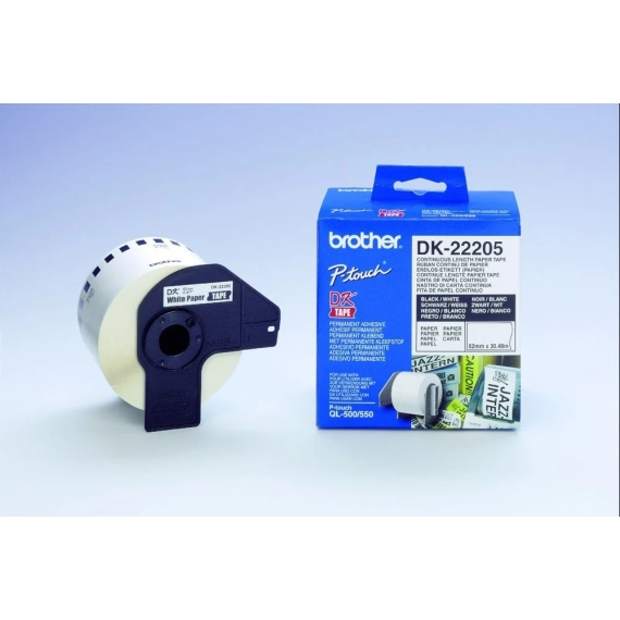 Skal du printe mye? Sikre deg Brother Løpende Taperull Sort på Hvit 62mm til modellene QL 570, QL 700 og mange fler. Perfekt for alle dine etiketteringsbehov. Klar til bruk!