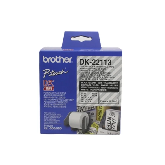 Brother Løpende Taperull Sort på Klar 62mm (15.24m)