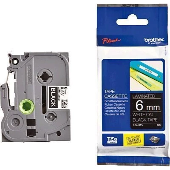 Brother P-Touch Tape Hvit på Sort 6mm (8m)