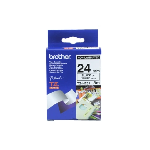 Holdbar Brother P-Touch Tape TZE-N251, 24mm, sort på hvit. Perfekt for 2420 PC, 2430 PC, 9600, E 550 WNI VP & mer. Se kompatible modeller!