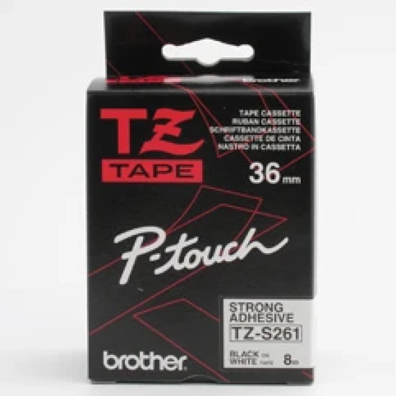 Ekstra holdbar Brother P-Touch Tape TZE-S261, 36mm, sort på hvit. Kompatibel med P-Touch 3600, 550, 9200DX, & flere. Bestill nå for pålitelig merking!