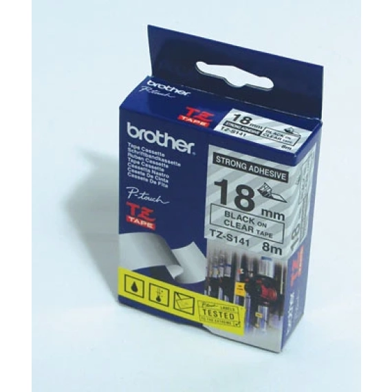Gå tom for etiketter? Sikre Brother P-Touch Tape TZE-S141, 18mm sort på klar, ekstra klebende for klare og holdbare etiketter. Handle smart her!