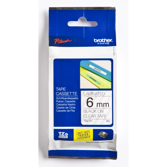 Brother P-Touch Tape Sort på Klar 6mm (8m)