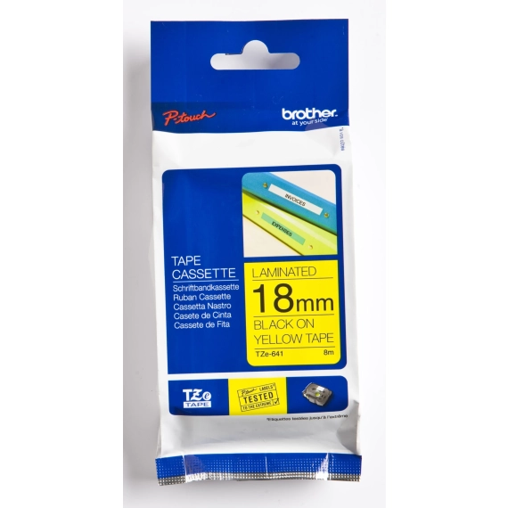 Mangler tape? Utforsk Brother P-Touch Tape TZE-641, sort på gul, 18mm x 8m. Perfekt for PT-P 900 W, E 550 W VP, D 600 VP & mer. Utforsk serien nå!