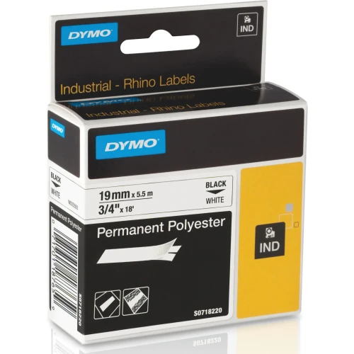 Dymo Rhino Permanent Polyester Label Sort på Hvit 19mm (5.5m)