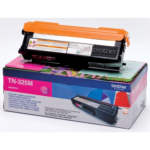 Utstyr din Brother skriver med TN-325M høykapasitets toner for levende magenta utskrifter. Passer perfekt til HL 4570 CDW, MFC 9970 CDW og mer. Prøv i dag!