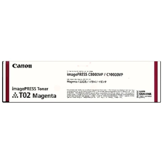 Sikre perfekte utskrifter med Canon Toner Magenta T02 (43.000 sider) for imagePRESS C 10000 VP og C 8000 VP. Klar til bruk med varenummer 8531B001.