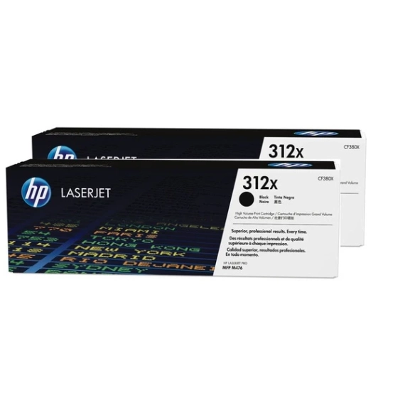 Optimaliser utskriftene med HP Toner 312X Sort Høykapasitet 2stk for LaserJet Pro MFP M 476 dn, dw, nw. Opptil 8.800 sider. Klar til bruk!