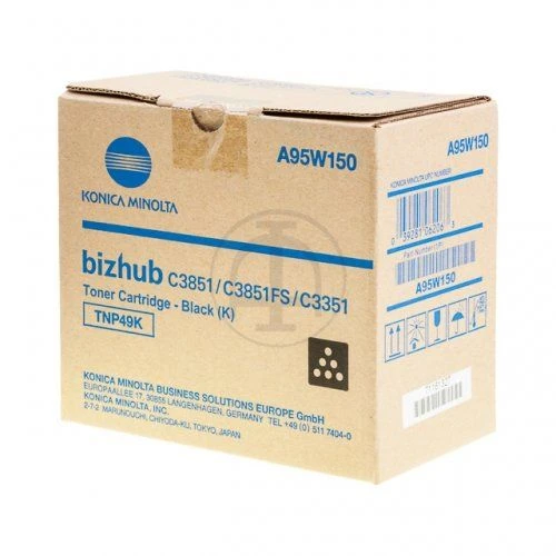 Sikre optimal utskriftskvalitet med Konica Minolta Toner Sort TNP-49K, kapasitet 13.000 sider. Passer til Bizhub C 3351, C 3851, C 3851 FS. Varenummer A95W150. Se kompatible modeller.