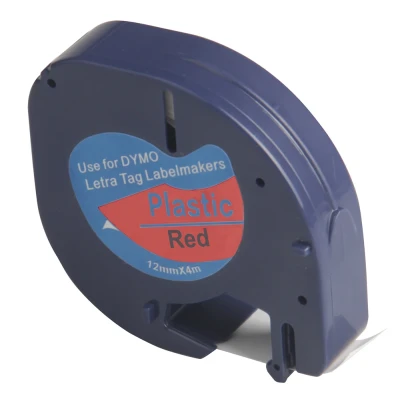Yaha 91203 LT Label Plast Sort på Rød 12mm (4m), erstatter Dymo S0721630