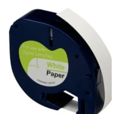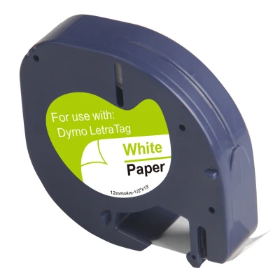 Yaha 91200 LT Tape Papir Sort på Hvit 12mm (4m), erstatter Dymo S0721510