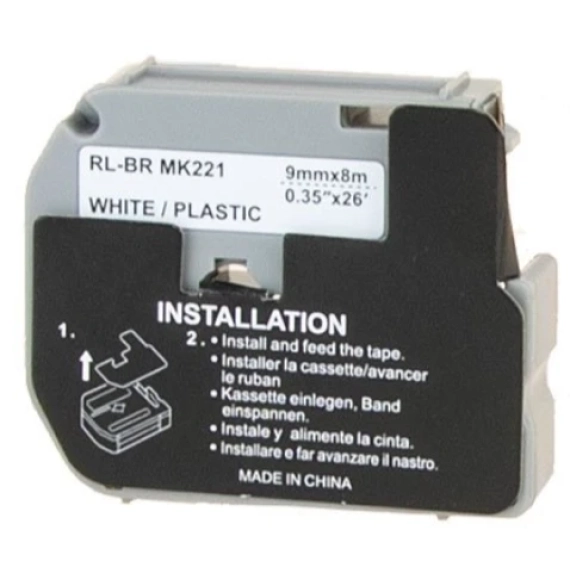 Yaha MK221 M-Tape Sort på Hvit 9mm (8m), erstatter Brother MK-221BZ