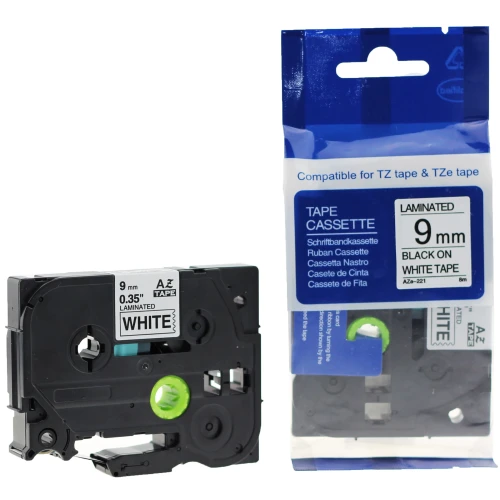 Yaha TZE-221 P-Touch Tape Sort på Hvit 9mm (8m), erstatter Brother TZE-221