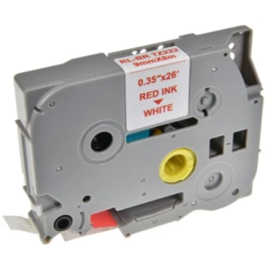 Yaha TZE-222 P-Touch Tape Rød på Hvit 9mm (8m), erstatter Brother TZE-222