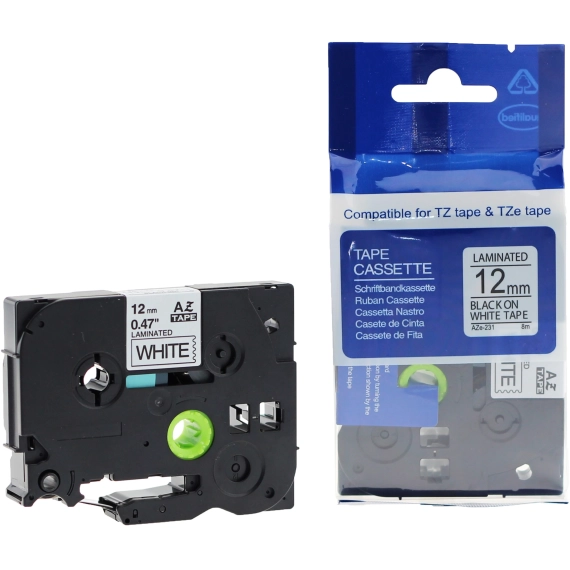 Yaha TZE-231 P-Touch Tape Sort på Hvit 12mm (8m), erstatter Brother TZE-231